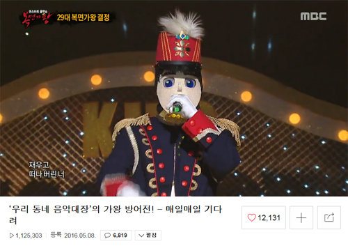 8일 방송된 MBC '일밤-복면가왕'에서 ‘음악대장’ 부른 '매일매일 기다려'는 9일 오후 4시 55분 네이버 TV캐스트 기준 112만2981번 재생됐다.