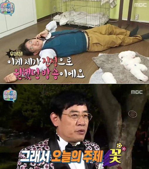 그는 첫 방송에서 강아지들과 함께 출연해 예능 최초로 ‘눕방(누워서 하는 방송)’을 탄생시켜 주목 받았고요.