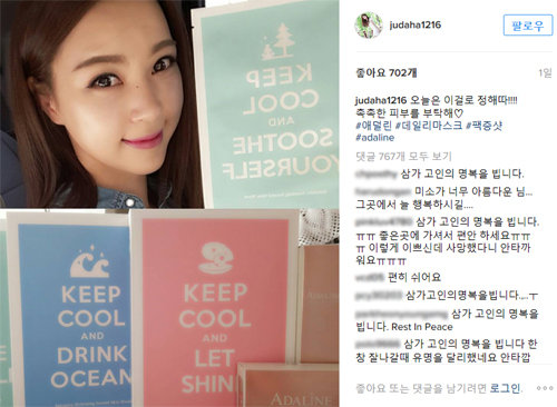 주다하는 사망 하루 전날인 14일 자신의 인스타그램에 한 장의 사진을 게재했다.