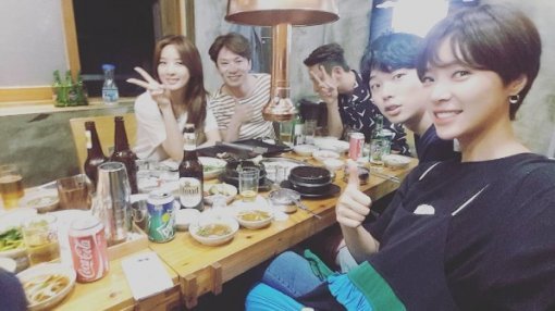 황정음은 한 식당에서 류준열·이수혁·정상훈·이청아와 셀피를 찍으며 ‘운빨’ 출연진의 화기애애한 분위기를 전했다.