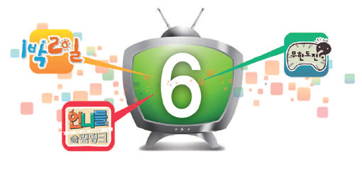 KBS 2TV 예능프로그램 ‘해피선데이-1박2일’(‘1박2일’)에서 지난달 새로운 멤버 윤시윤을 투입해 김주혁의 공백을 메우며 6인 체제로 다시 복귀시킨 연출자 유호진 PD의 말이다. ‘1박2일’ 말고도 KBS 2TV ‘언니들의 슬램덩크’ 역시 6명의 멤버로 출연진을 구성했다. MBC ‘무한도전’은 현재 5명의 멤버로 꾸려가고 있지만 건강상 이유로 잠시 자리를 비운 정형돈을 포함하면 역시 6명의 프로그램이라 해도 지나치지 않는다. 리얼버라이어티 예능프로그램의 대표격으로 꼽히는 이 프로그램에게 ‘6’이란 숫자는 그래서 특별하다.