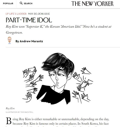 이번 보도는 대중문화인으로서 특별한 행보를 보이고 있는 로이킴에게 흥미를 느낀 뉴요커 측의 제안으로 성사됐다. 기사는 한국에서는 인기가수로, 미국에서는 평범한 학생으로 살아가는 로이킴의 ‘두 개의 삶’을 상세히 다루고 있다. 뉴요커의 기사는 미국에서 소탈하게 생활하는 로이킴의 일상을 가감 없이 보여준다.