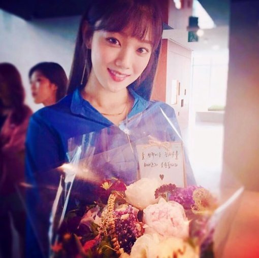 사진 속 이성경은 꽃을 들고 활짝 웃으며 카메라를 응시하고 있다.