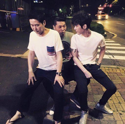 사진에는 서장훈 무릎에 앉아 여유를 만끽하는 신동엽, 허지웅의 모습이 담겼다.