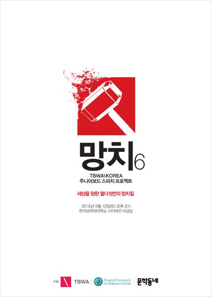글로벌 광고회사 TBWA코리아(대표이사 이수원)가 10일 오후 2시 한국외국어대학교 사이버관 대강당에서 대학생 스피치 프로젝트 여섯 번째 이야기 ‘망치6’를 선보인다.