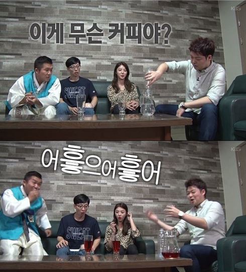 투명한 물이 순식간에 커피로 변하는 모습이 유재석을 경악시켰다.