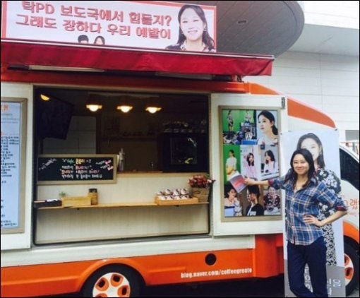 간식차 위에는 "탁PD 보도국에서 힘들지? 그래도 장하다 우리 예발이"라는 차태현의 메시지가 적혀있다.