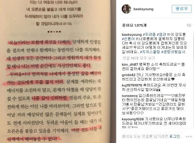 3년 만에 임신 소식을 전한 백지영이 인스타그램에 자신의 심경을 암시하는 글을 올렸다.