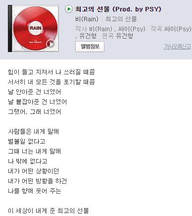 ▼다음은 ‘최고의 선물’ 가사 전문▼