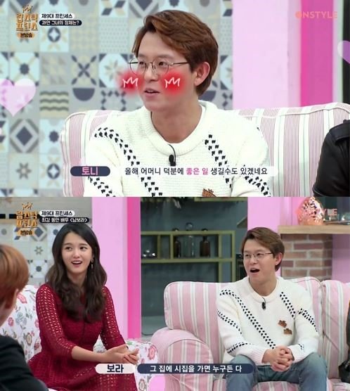 김희철은 “이 말은 돌려서 말하면 토니 형과 결혼하고 싶다?”라고 해석했고, 토니안은 “나 올해 어머니 덕분에 좋은 일 생길수도 있겠네”라고 흐뭇해 했다.