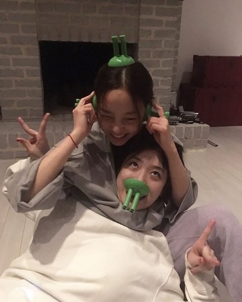 공개된 사진 속에는 설리와 구하라가 우스꽝스러운 포즈를 취하고 캐릭터형 소주 케이스 일부로 장난을 치는 모습이 담겼다.