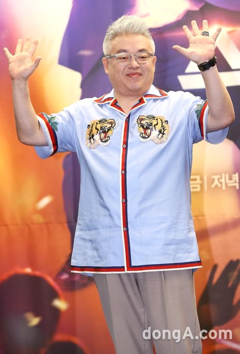 작곡가 김형석이 13일 오전 서울 마포구 스탠포드호텔에서 열린 케이블채널 tvN ‘수상한 가수’ 제작발표회에 참석해 포토타임을 하고 있다.