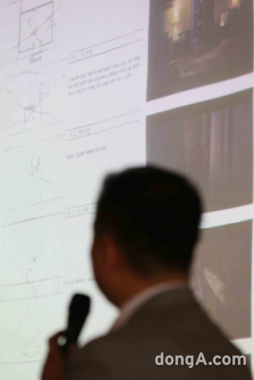 이수성 감독이 17일 오후 서울 강남구 프리마호텔에서 열린 기자회견에서 콘티를 공개하고 있다.