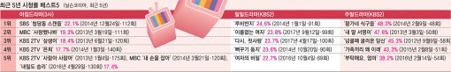 주중 미니시리즈는 시청률의 부침이 심하다. ‘태양의 후예’와 같은 대박 드라마가 탄생하지만, 톱스타와 스타작가가 참여하고 수백억 원의 제작비가 투입되어도 초라한 시청률에 고개를 숙이는 일도