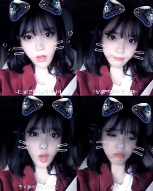 모바일 애플리케이션을 이용해 촬영한 해당 영상에서 아이유는 “나 이쁜 척하면 재수없지? 근데 나도 진짜 곤란하다. 나는 예쁜 척 하는 게 아니라 그냥 예쁘게 태어난 곤데~”라고 깜찍한 표정을 지으며 말한다.