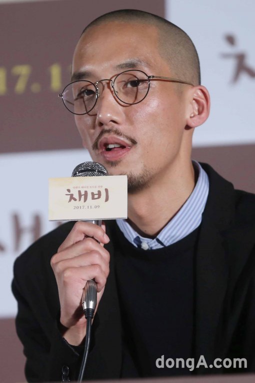 조영준 감독이 26일 오후 서울 용산구 한 멀티플렉스관에서 열린 영화 채비 언론배급시사회에 참석해 인사말을 하고 있다.