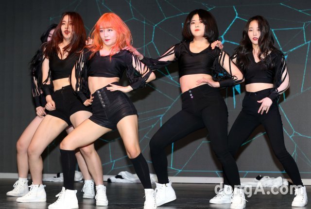 그룹 소녀주의보가 13일 오후 서울 강남구 강남관광정보센터 한류체험관 케이홀에서 열린 미디어 쇼케이스에서 새로운 무대를 선보이고 있다.