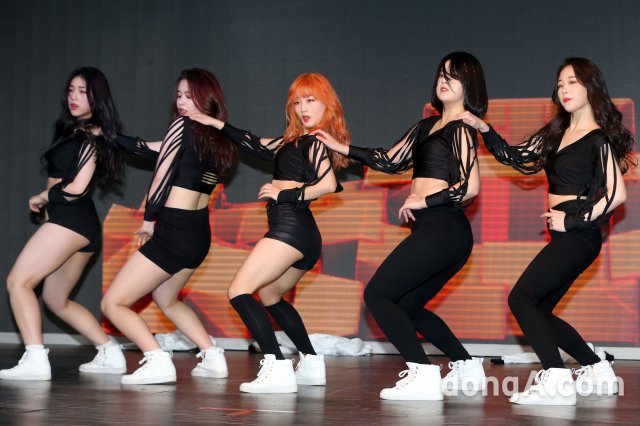 그룹 소녀주의보가 13일 오후 서울 강남구 강남관광정보센터 한류체험관 케이홀에서 열린 미디어 쇼케이스에서 새로운 무대를 선보이고 있다.