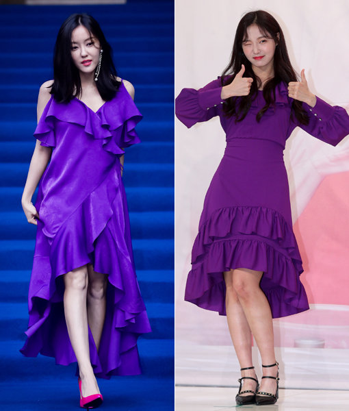 온통 ‘보랏빛’ 물결이다. 2018 봄 컬러인 울트라 바이올렛이 스타들의 마음까지 물들였다. 사진은 티아라 출신 효민(왼쪽)과 모모랜드의 연우. 사진|스포츠동아DB·스포츠코리아