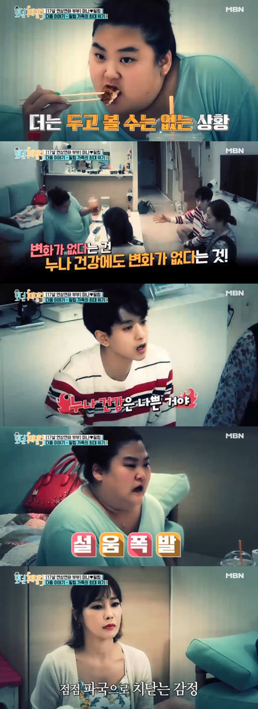 류필립은 몸무게가 100㎏대 임에도 식습관을 바꾸지 않는 친누나에게 “변화가 없다는 건 누나의 건강에 변화가 없다는 거다. 지금 누나의 건강은 나쁘다”며 걱정의 잔소리를 했다.