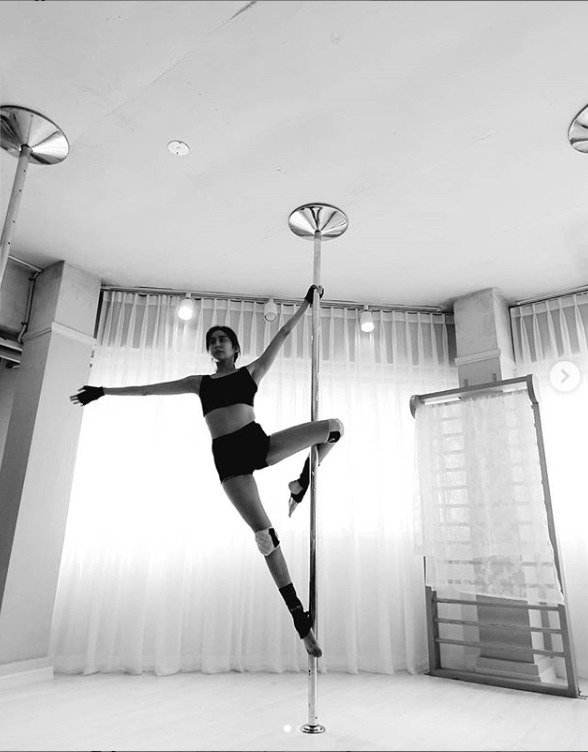 사진과 영상 속 유이는 늘씬한 몸매로 수준급의 폴댄스를 보여주고 있는 모습이다. 쭉쭉 뻗은 8등신 몸매가 눈길을 끈다.