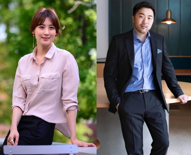 배우 수현(왼쪽)과 위워크 한국 대표 차민근 씨(오른쪽). 사진=스포츠동아DB, 차 씨 소셜미디어