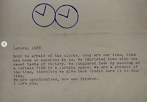 이 글은 쿠바 태생의 미술가 펠릭스 곤잘레즈-토레스(Félix González-Torres, 1957-1996)가 1988년, HIV 감염 진단으로 두려움에 사로잡힌 동성 연인을 위로하기 위해 쓴 문구다.
