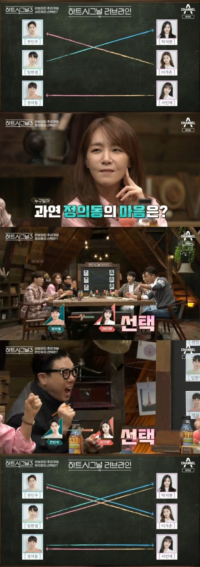 22일 오후 방송된 채널A 예능 프로그램 ‘하트시그널 시즌3’에서는 남녀 입주자들의 설렘을 자극하는 첫 데이트가 이어졌다. 데이트 후 입주자들은 마음 가는 상대를 택했고 러브라인에 변화가 생겼다.