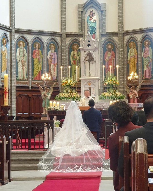 공개된 사진 속에는 성당에서 결혼식을 올리고 있는 최희의 모습이 담겼다. 경건한 분위기와 함께 웨딩드레스를 입은 최희의 뒷모습이 눈길을 끈다.