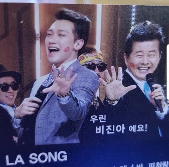 공개된 사진 속에서는 지난 2014년 발매된 비의 정규 6집 ‘레인 이펙트’(RAIN EFFECT) 더블 타이틀곡 ‘라 송’(La Song) 활동을 함께 한 비와 태진아의 모습이 담겨져 있다. 당시 ‘비진아’(비+태진아)로 불리며 큰 인기를 끌었던 두 사람은 ‘라 송’에 태진아의 히트곡 ‘동반자’를 섞은 패러디 영상이 화제를 일으키며 듀엣 무대까지 오른 바 있다.