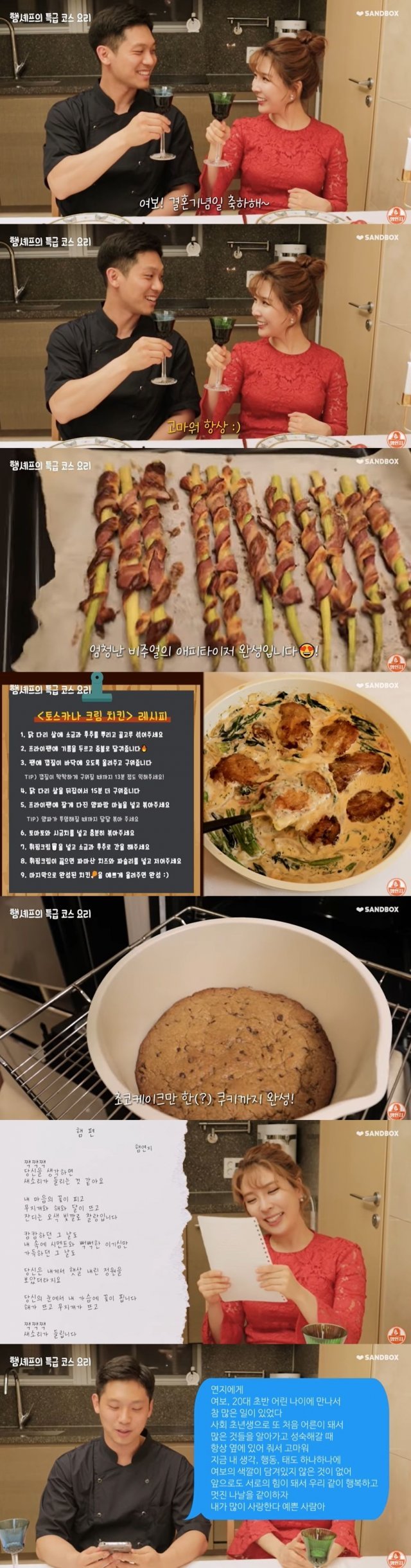 함연지와 그의 남편은 “저희는 감사 편지를 써서 서로 읽어주기로 했다”며 결혼기념일 이벤트를 공개했다. 함연지는 “저는 시를 써왔다”며 ‘햄편’이라는 제목의 자작시를 낭송했다. 이어 함연지의 남편이 편지를 써왔다고 고백했지만 함연지는 “핸드폰에?”라고 반문해 웃음을 자아냈다. 이후 남편이 “내가 많이 사랑한다 예쁜 사람아”라고 고백, 감동을 더했다.