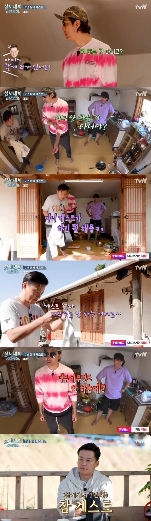 차승원은 “진짜 게스트인데? 리얼 게스트? 너무 아무것도 안하는데?”라며 당황해 웃음을 안겼다. 이서진은 “게스트는 원래 아무것도 안하는 거다”며 당당한 모습을 보여줬다.