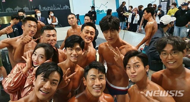 공개된 사진에는 피트니스 대회 현장 비하인드 모습이 담겨 있다. 목 부상으로 참여하지 못한 박성광을 제외하고, 트레이너 양치승과 마흔파이브 멤버 허경환, 박영진, 김원효, 김지호가 근육질 몸매를 뽐내며 환한 미소를 짓고 있다.