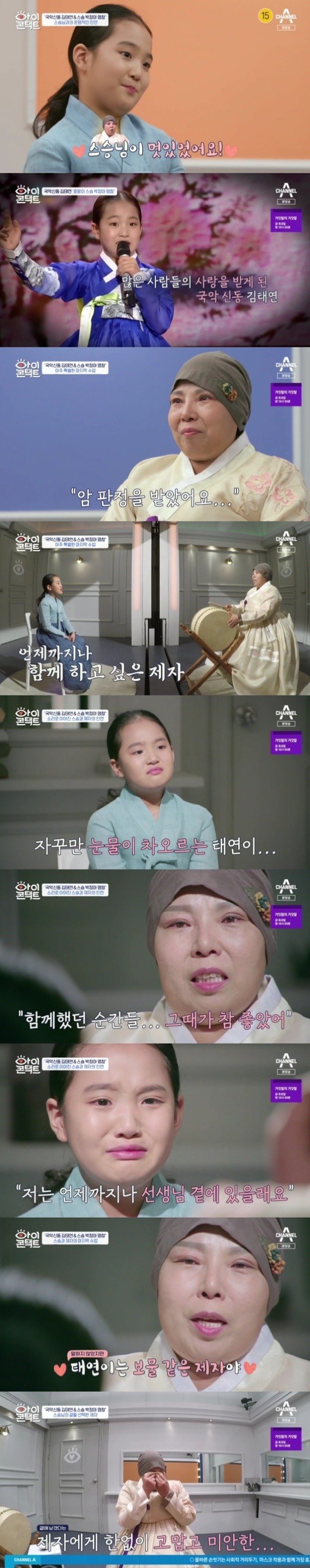 행복했던 기억을 되짚던 박 명창은 “너희들 아끼는 마음에 많이 혼냈는데 이해해 줘”라고 그 동안 엄했던 이유를 설명했고, 김태연은 “선생님은 우리 잘 되라고 혼내셨던 것”이라고 답해 9살 아이답지 않은 성숙함을 보였다. 박 명창은 그런 김태연에게 “제자들이 떠날 때 엄청 힘들었는데, 태연이가 다 떠나도 안 떠날 거라고 해서 힘이 많이 됐어”라고도 고백했다.