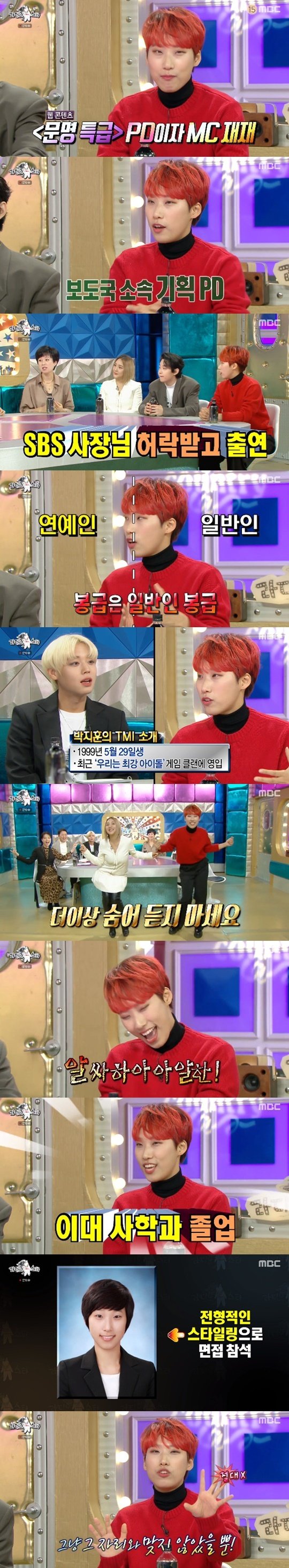 재재는 PD와 진행자를 겸직하는 것에 대해 “유려하고 수려하게 잘하고 있다”며 능청스럽게 답했다. 이어 재재는 SBS 보도국 소속 PD라며 “(MBC 출연을 )SBS 사장님이 흔쾌히 허락했다”라고 부연했다.