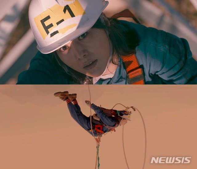 이날 공개된 스틸은 정은 앞에 펼쳐질 파란만장한 드라마를 예고한다. 첫 번째 사진에서 파란색 작업복을 입고 놀란 표정으로 어딘가를 응시하고 있는 정은의 표정과 두 번째 사진 속 줄에 의지해 매달린 정은의 모습은 예상치 못한 도전이 있을 것을 암시한다.