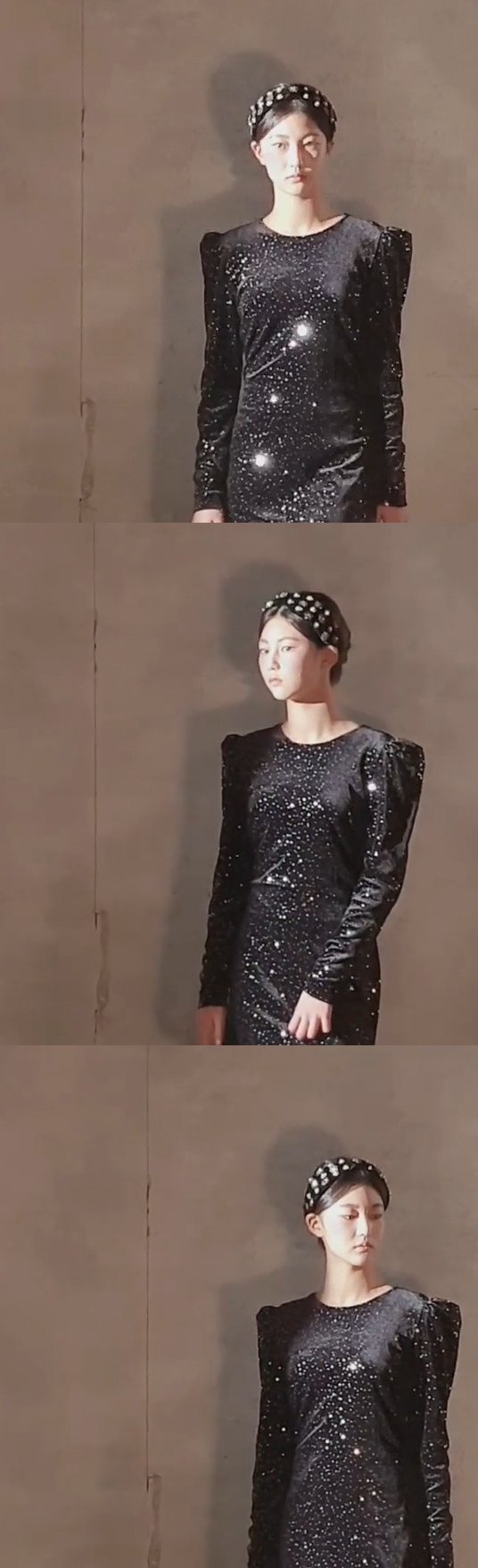 공개된 영상에는 송지아가 화려한 비즈가 장식된 블랙 드레스를 입고 포즈를 취하는 모습이 담겼다. 송지아는 도도한 눈빛과 함께 시크한 분위기를 자아내고 있는 것.