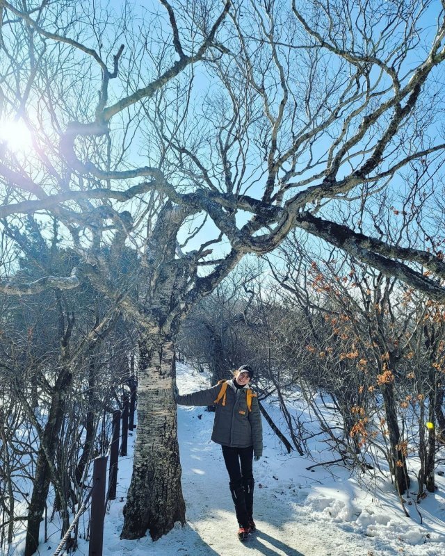 배우 이시영이 태백산 등산 인증샷을 공개했다.