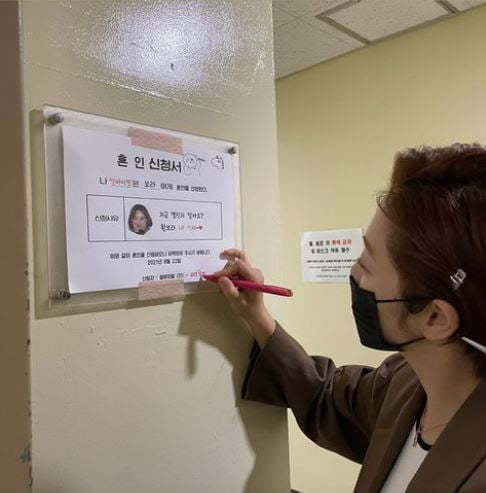 22일 황보라는 자신의 인스타그램 스토리를 통해 한 장의 사진을 게재했다. ‘혼인신고서’라고 써 있는 종이에는 “나 ‘썰바이벌’은 ‘보라’에게 혼인을 신청한다”는 문구와 “지금 몇 신지 알아요? 황보라 내 색시”라고 적혀 있다. 이는 KBS Joy ‘썰바이벌’ 제작진이 황보라를 위해 준비한 것으로 보인다. 현재 황보라는 KBS Joy ‘썰바이벌’에서 MC로 활약 중이다.
