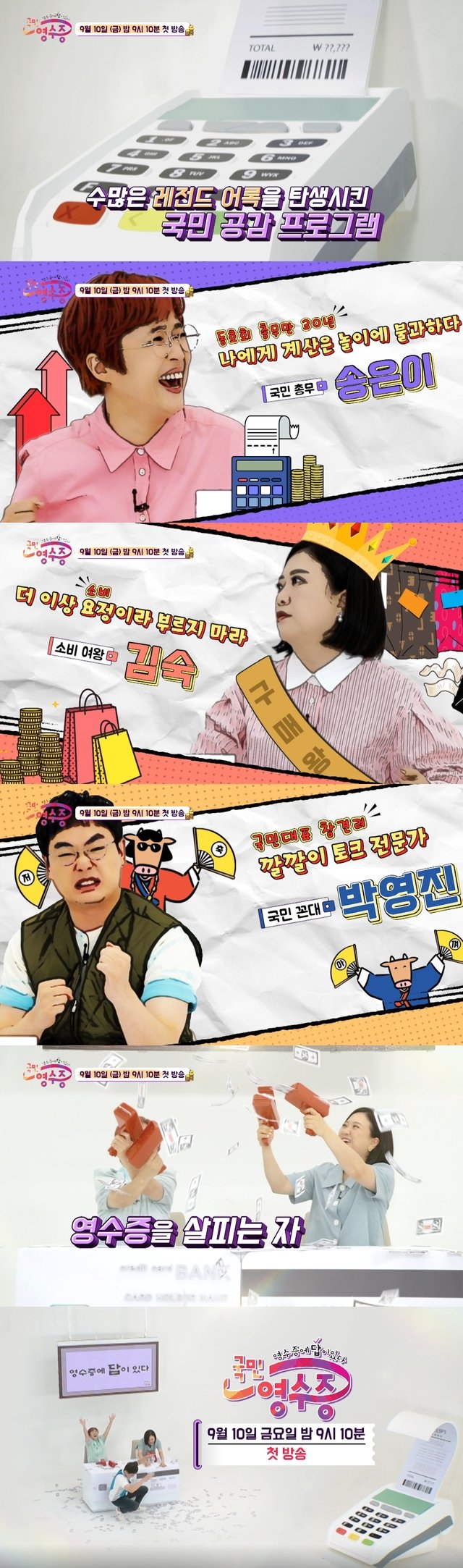 ‘국민 영수증’은 의뢰인들의 영수증을 받아 내역을 분석하고 이에 맞는 맞춤형 솔루션을 제시하는 프로그램이다. 9월10일 오후 9시10분 KBS Joy를 통해 첫 방송된다.