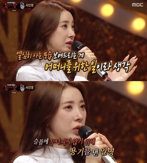 이날 서인영은 ‘복면가왕’의 무대를 준비하던 중 모친상을 겪게 된 가슴 아픈 사연을 전했다.