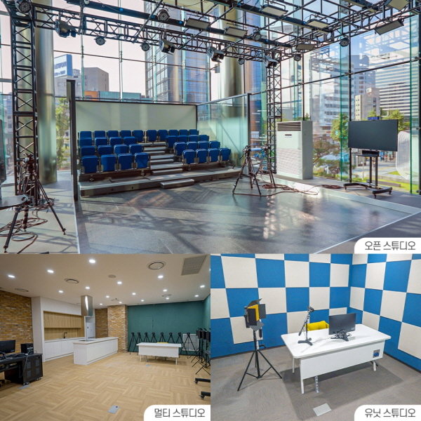 ‘1인 미디어 콤플렉스’는 제작 스튜디오(7식)와 미디어 분야 스타트업 성장 지원을 위한 독립형 사무공간(20개소), 회의실 및 네트워킹 공간 등으로 구성되어 있다. 제작 스튜디오는 오픈스튜디오 1곳, 멀티스튜디오 1곳, 소형스튜디오 5곳을 운영 중이다. 약 54평 규모의 오픈스튜디오는 강연, 행사, 보이는 라디오, 팬 미팅 등 비교적 규모가 큰 행사 및 콘텐츠 촬영에 적합하도록 조성했다. 멀티스튜디오는 크로마키, 요리, 예능 등 활용 범위가 넓도록 꾸몄다. 소형스튜디오는 개인 라이브 방송 등 1인 미디어에 특화된 곳으로 제작 장비는 물론 분장실, 락커룸 등을 함께 이용할 수 있다. 최근 유명 크리에이터 채채와 요리보고조리보고가 이 곳을 방문해 스튜디오를 활용한 영상을 촬영하기도 했다.