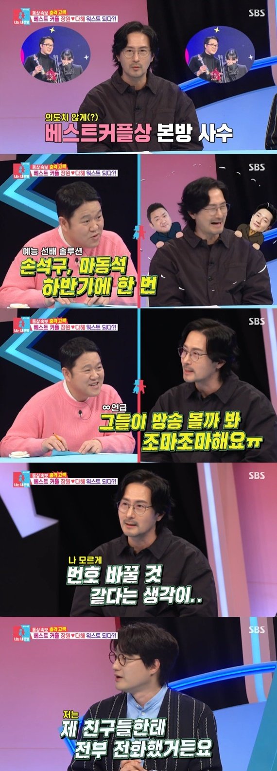 이어 김구라가 “절친이면 이름 언급할 수도 있지 않냐”라고 말하자 임형준은 “(손석구, 마동석이) 번호 바꿀 수도 있을 것 같다”라고 너스레를 떨며 웃음을 안겼다. 더불어 ‘베스트커플상’ 선배인 이장원 역시 마동석과의 전화 연결을 추천하며 “저는 제 친구들에게 모두 전화했다”라고 고백해 재미를 더했다.