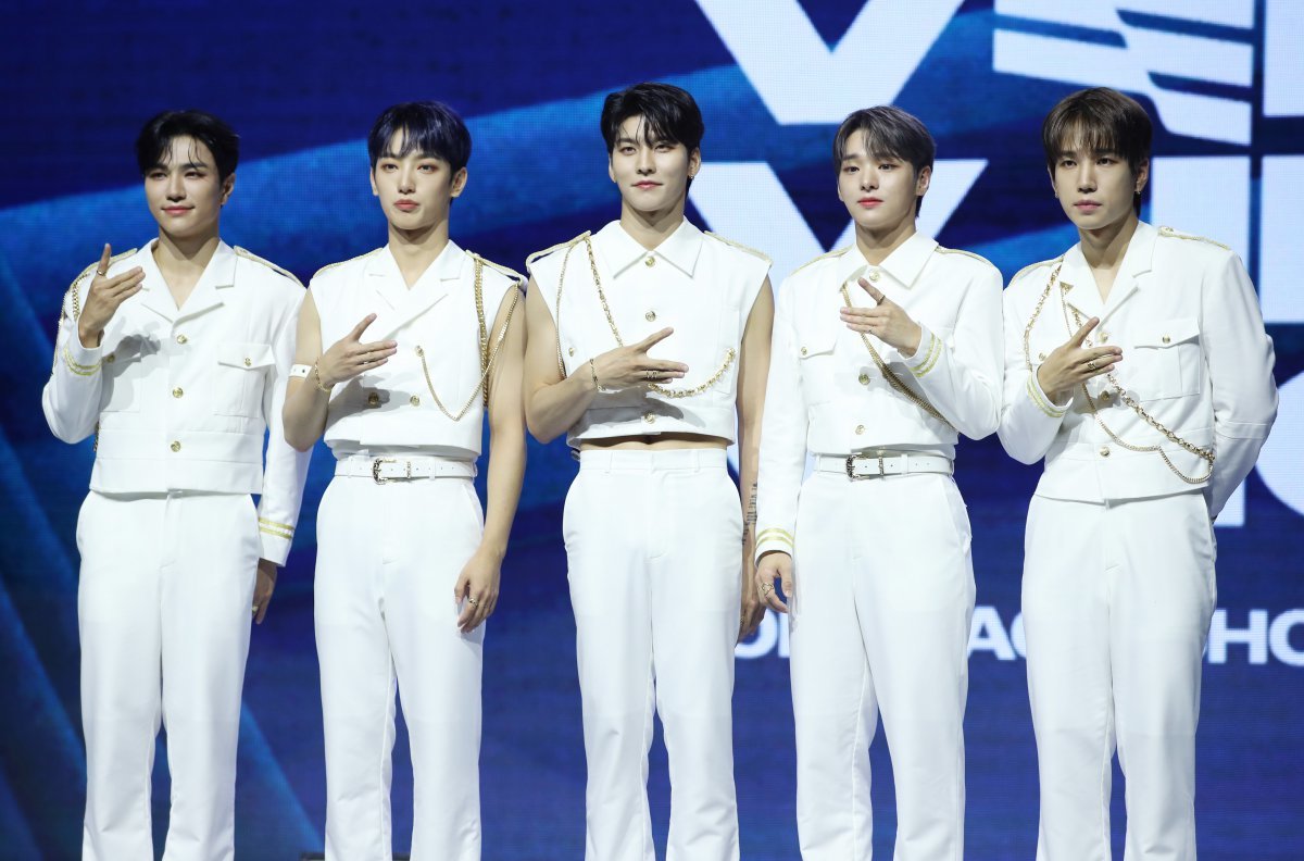 그룹 ‘배너(VANNER)’가 21일 서울 광진구 예스24라이브홀에서 열린 첫 번째 미니앨범 ‘베니 비디 비시(VENI VIDI VICI)’ 발매 기념 쇼케이스에서 포토타임을 갖고 있다. 왼쪽부터 태환, 영광, 곤(GON), 혜성, 성국. 팀명 배너는 승리를 뜻하는 ‘빅토리(Victory)’와 깃발을 뜻하는 ‘배너(Banner)’가 합해진 팀명으로 정상을 향해 나아가 승리의 깃발을 꽂겠다는 의미를 갖고 있다. 이번 앨범 제목 ‘베니 비디 비치’는 라틴어로 ‘왔노라(Veni), 보았노라(Vidi), 이겼노라(Vici)’라는 뜻으로 같은 맥락의 뜻을 담고 있다. 2023.08.21 뉴시스