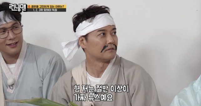 지석진은 그러자 “(결혼에 대한 생각이) 지금은 달라졌다”며 수습하고 나섰다.