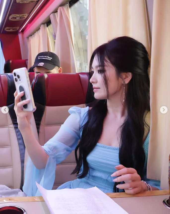 하늘빛 드레스를 입은 그는 햇살에 비친 신비로운 실루엣으로 시선을 사로잡았고, 휴대전화를 든 사진에서는 마치 여신을 연상케 하는 분위기를 자아냈다. 짧은 등장에도 불구하고, 그의 세련된 비주얼과 압도적인 존재감은 팬들의 큰 호응을 얻었다.