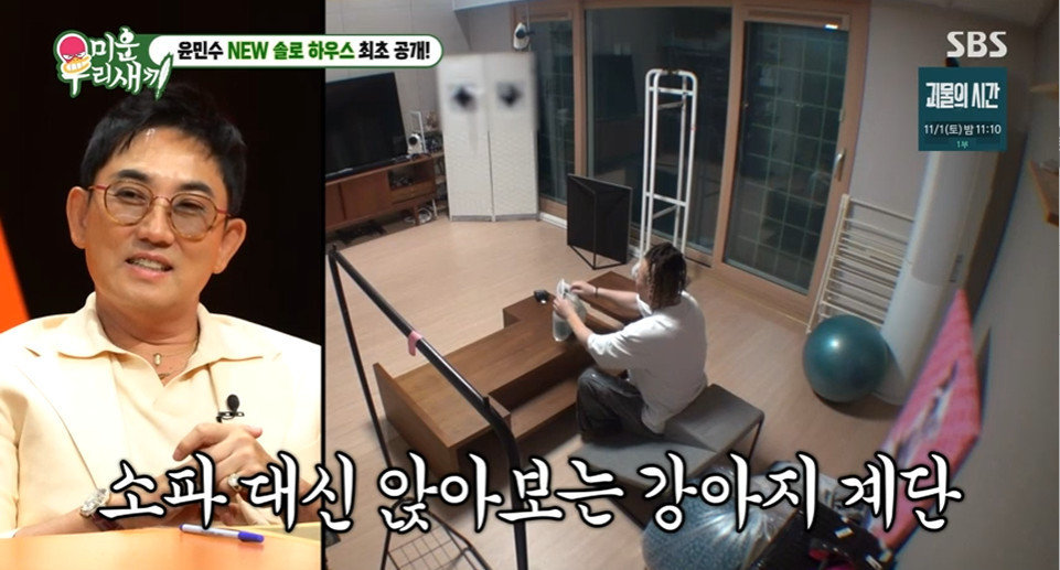 마지막으로 4층에는 윤후의 취미 공간과 넓은 테라스가 준비되어 있었다. 윤민수는 거실로 내려와 소파 대신 강아지 계단에 앉았다. 이를 본 이승철은 “짠하다, 진짜”라며 따뜻하게 미소를 지었다.
