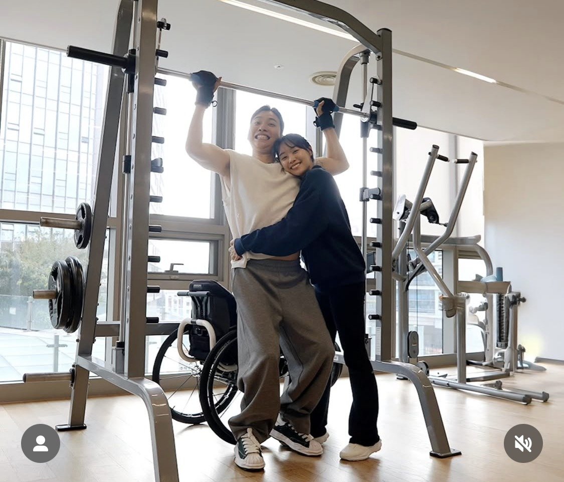 7일 박위는 자신의 사회관계망서비스(SNS) 계정에 철봉을 잡고 두 발로 선 모습을 게재했다. 그 옆에 선 송지은은 남편을 안고 있어 눈길을 끈다.