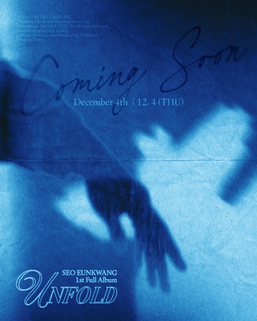 공개된 포스터는 푸른 조명 아래 서은광의 손의 실루엣을 담고 있어 신비로운 무드와 감성적인 디자인이 시선을 사로잡았다. 길게 뻗은 손가락과 더불어 앨범명 ‘언폴드’, ‘커밍순’(Coming Soon) 등의 문구가 함께 새겨져 있어 팬심을 더욱 설레게 했다.