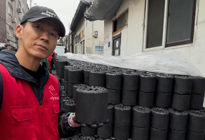 힙합 듀오 ‘지누션’ 멤버 션이 자녀들과 함께 연탄 나눔 봉사에 나섰다.
